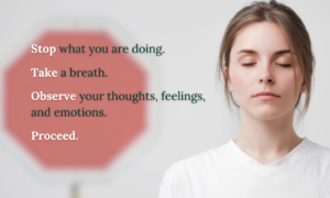 STOP is a stress response tool which can help alleviate stress. STOP is a short practice you can weave into your day to create space to step out of the worried mind and back into the present moment.
