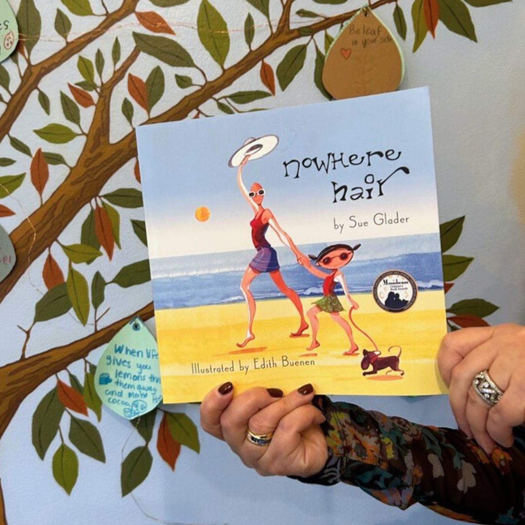 The little girl in NOWHERE HAIR knows two things: Her mom’s hair is not on her head anymore, and it must be somewhere around the house. After searching the obvious places, the story reveals that her mother, who is going through cancer treatment, is still silly, attentive, happy, and yes, sometimes very tired and cranky. The little girl learns that she didn’t cause the cancer, can’t catch it, and that Mommy still is very much up for the job of mothering. The book, written in rhyme, explains the importance of hats, scarves, wigs, going bald in public, and the idea of being nice to people who may look a little different than you. It ends with the idea that what is inside of us is far more important than how we look on the outside. For any parent or grandparent, NOWHERE HAIR offers a comfortable platform to explain something that is inherently very difficult.