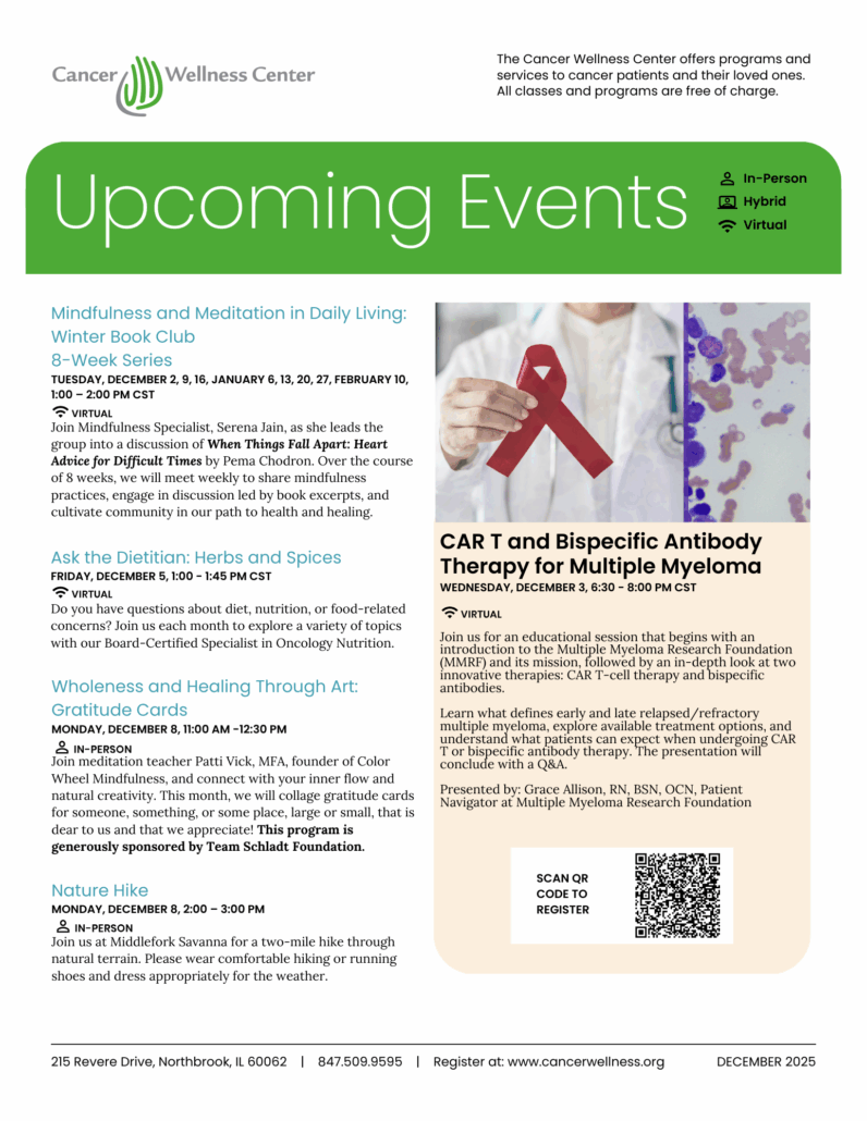 As part of its mission to assist everyone touched by cancer, all programs are free of charge.